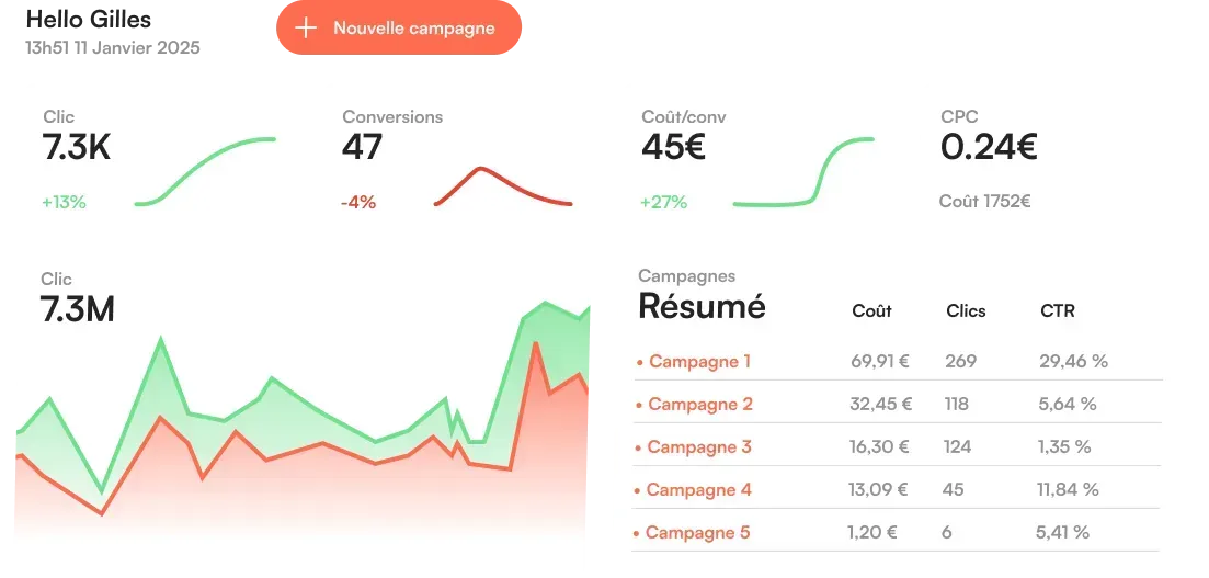 Au bout d’une semaine, vous pouvez déjà voir les premiers résultats de votre campagne. Vous pourrez juger de sa réussite à la fin de sa diffusion.